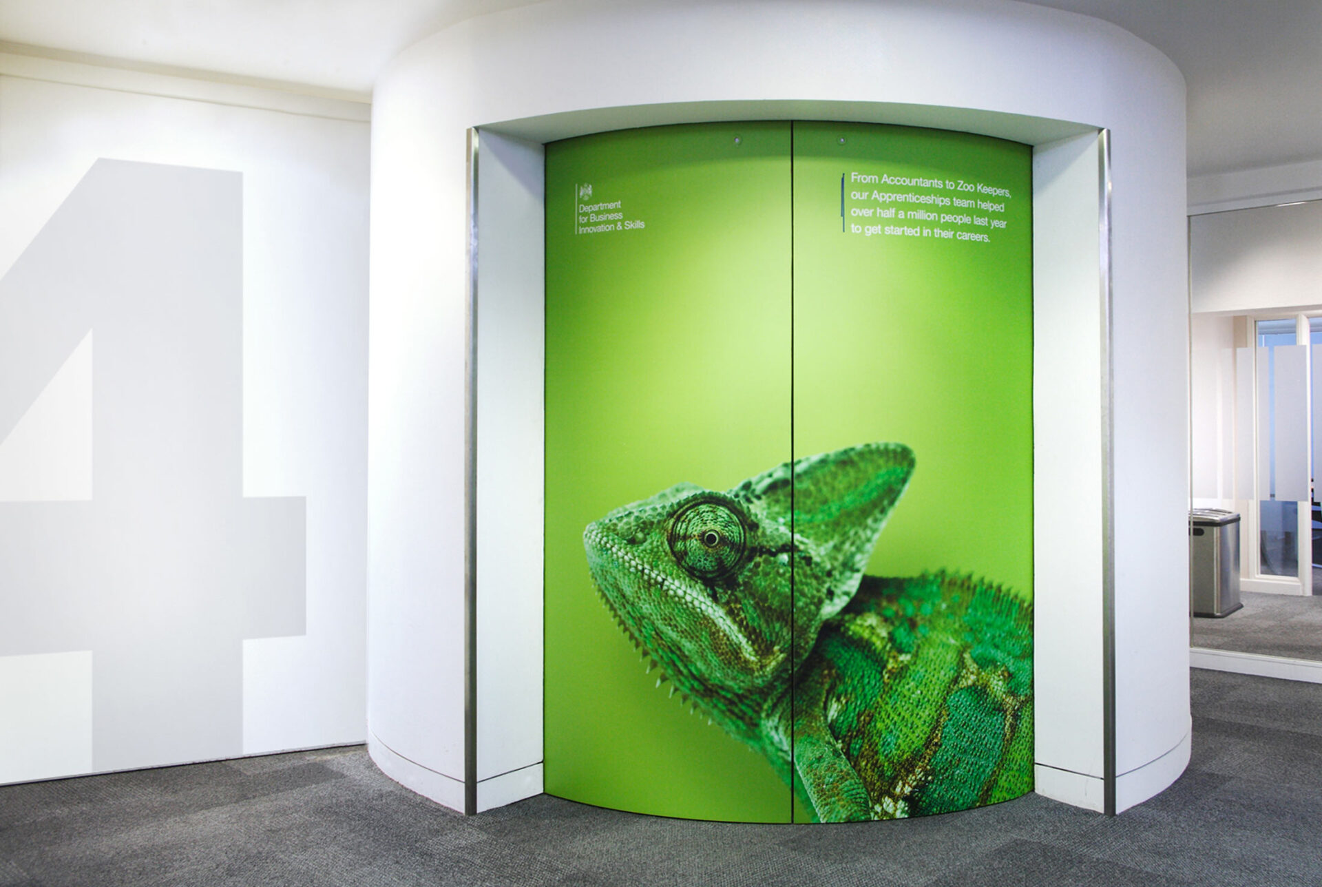 We launched with an office environment refresh, setting the story on totems for all to see and reimagining the Victoria Street reception as a business gallery and exhibition space. Iconic case studies brought the story to life on posters, lift doors and online and our launch film introduced the breadth of BIS’s connections, featuring people from inside and outside, ministers and directors, educators and business people.