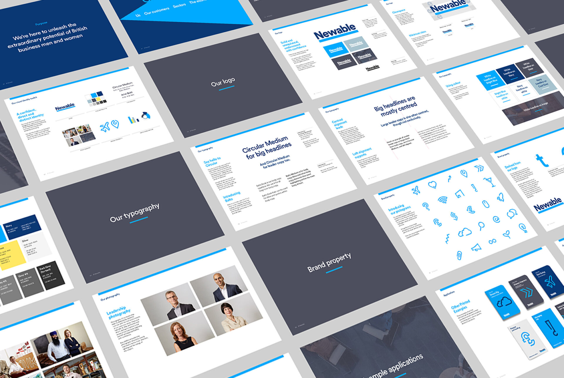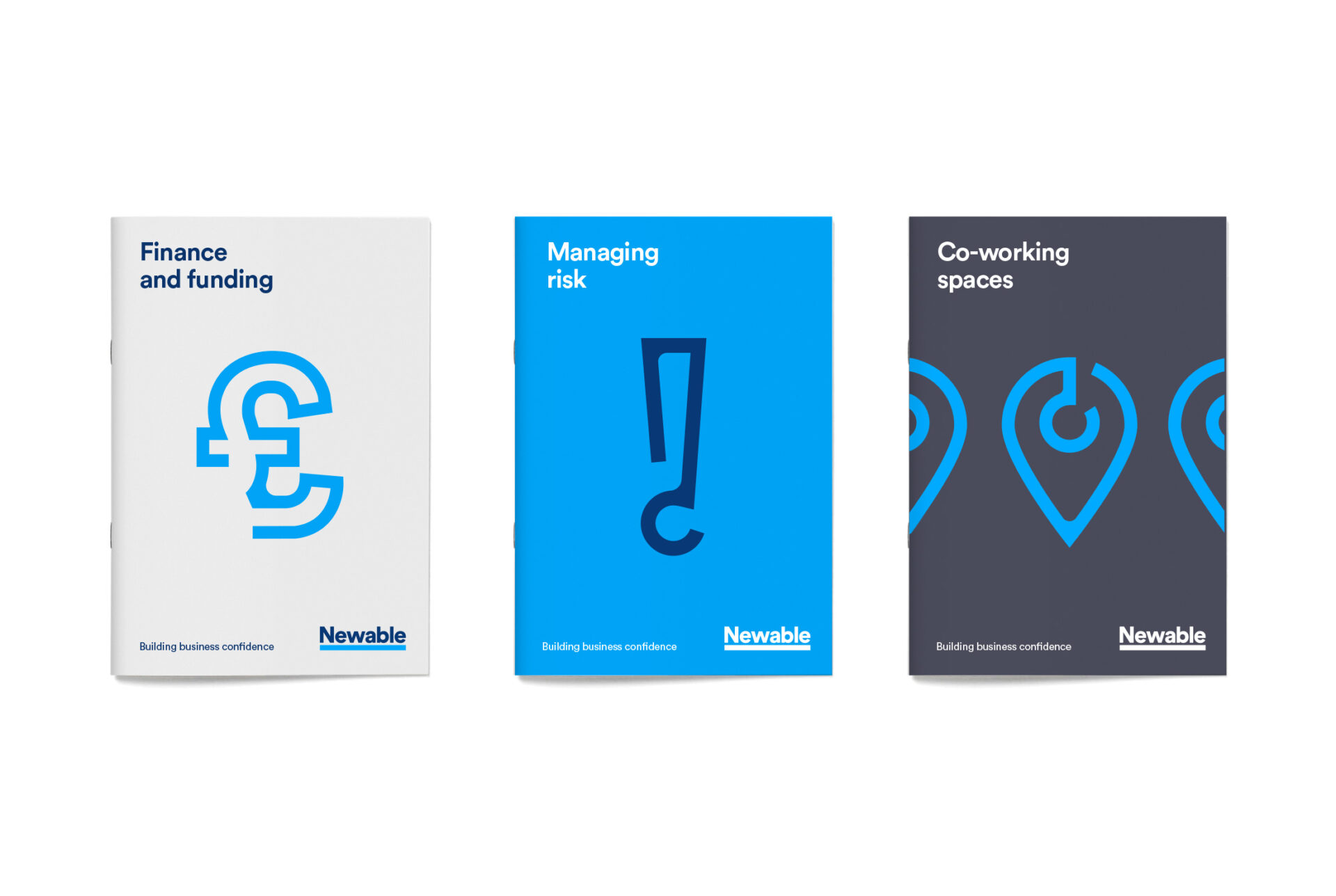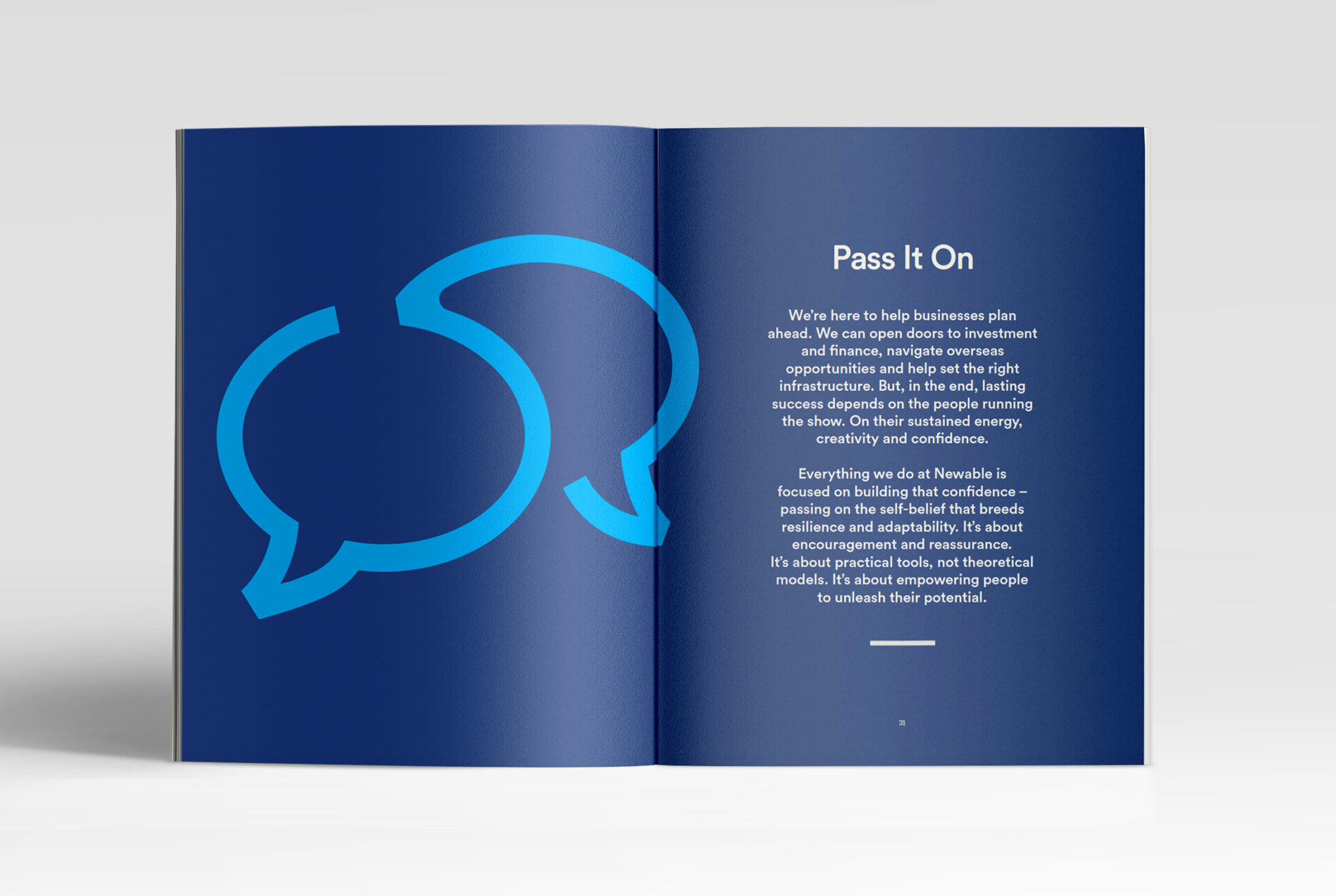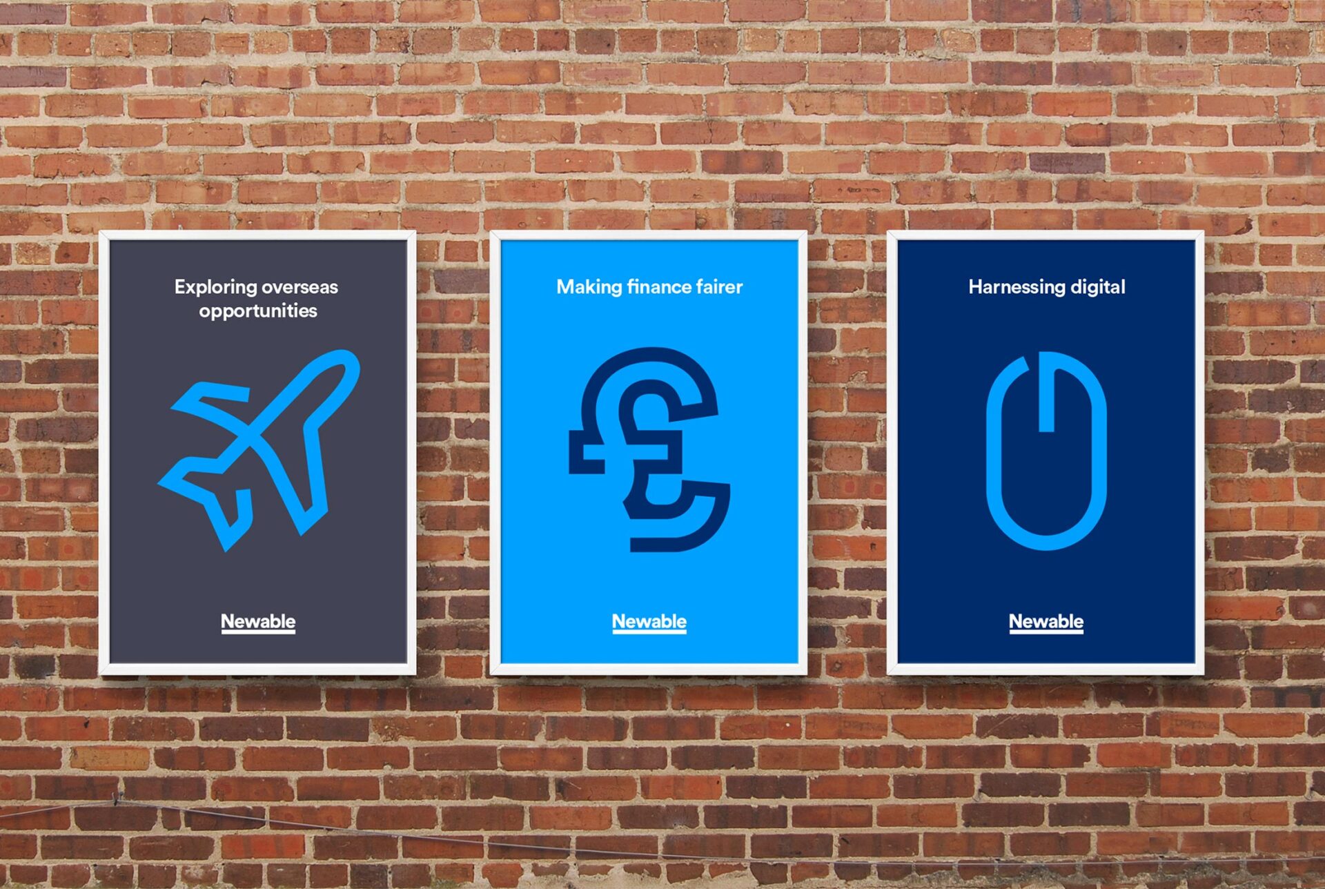Bold type, honest photography and a bright colour palette set the tone, while a simple, solid underline sums up the confidence Newable brings. The line steps out from the logo to create pictograms, infographics and textures, helping to illustrate Newable’s growth stories.